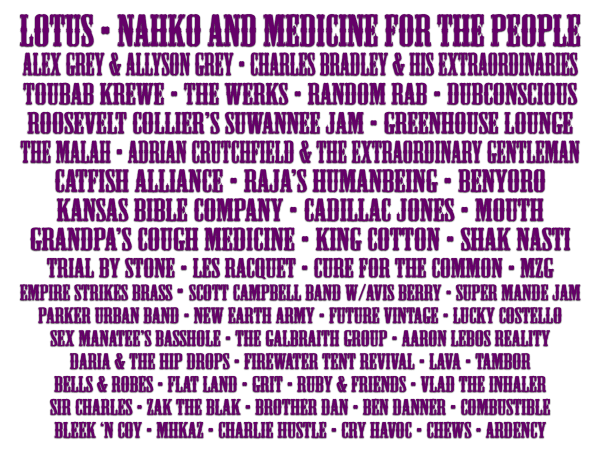 So we celebrate her life in music, art, performance, brotherhood/sisterhood and good times. This year’s collection of talent will certainly be a wonderful celebration. The aforementioned musical diversity can be examined most easily by looking at the top of the bill: Lotus and Nahko and Medicine for the People.
