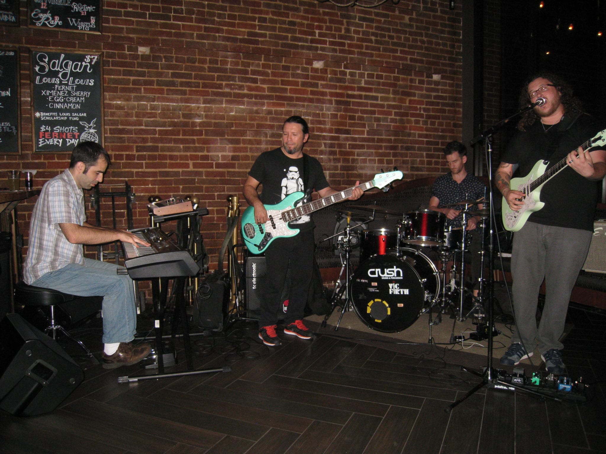 There was a young female vocalist in the house who joined the group for a pair of songs, including “All I Do.” Bassist Juan Santana blew this one up, and Richardson tossed out another great electric piano solo. They followed that up with a pair of covers I had heard them do several weeks back at the Blueberry Patch. The first was a slightly different arrangement of Emerson, Lake & Palmer’s cover of Aaron Copeland’s “Hoedown.” The second was Jeff Beck’s “Led Boots,” again a bit different from the one at the Patch, still amazing.