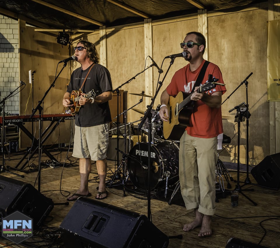 As the sun was making its late afternoon descent over the Currituck Sound, we arrived at Cosmo’s Pizzeria, where the pre-party for the Mustang Music Festival was preparing to kick off. In its fifth year, this festival keeps getting better and better. Mike Dianna and his crew have been working for weeks, and their hard work is just about ready to pay off. The stage in the parking lot was reminiscent of this festival’s early years when it was held in the parking lot of Mike’s restaurant.