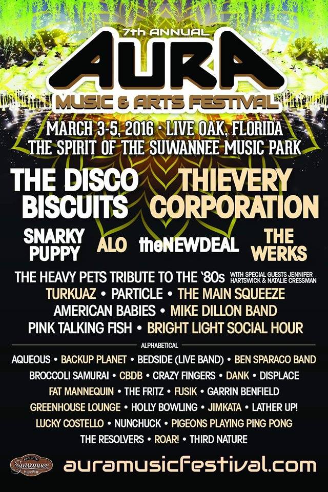 Adding to an already stellar lineup, the beautiful Spirit of the Suwannee Music Park will now also be welcoming Thievery Corporation, Snarky Puppy, theNEWDEAL, The Werks, Particle, Mike Dillon Band, Jimkata, Pigeons Playing Ping Pong, NUNCHUCK (Chuck Jones and Scott Zwang of Dopapod, Mike Dillon, and Craig Brodhead of Turkuaz), a live band set from Bedside, The Fritz, ROAR! (Carly Meyers’ band, formerly Yoj9imbo), Pigeons Playing Ping Pong, Lucky Costello and many many more.
