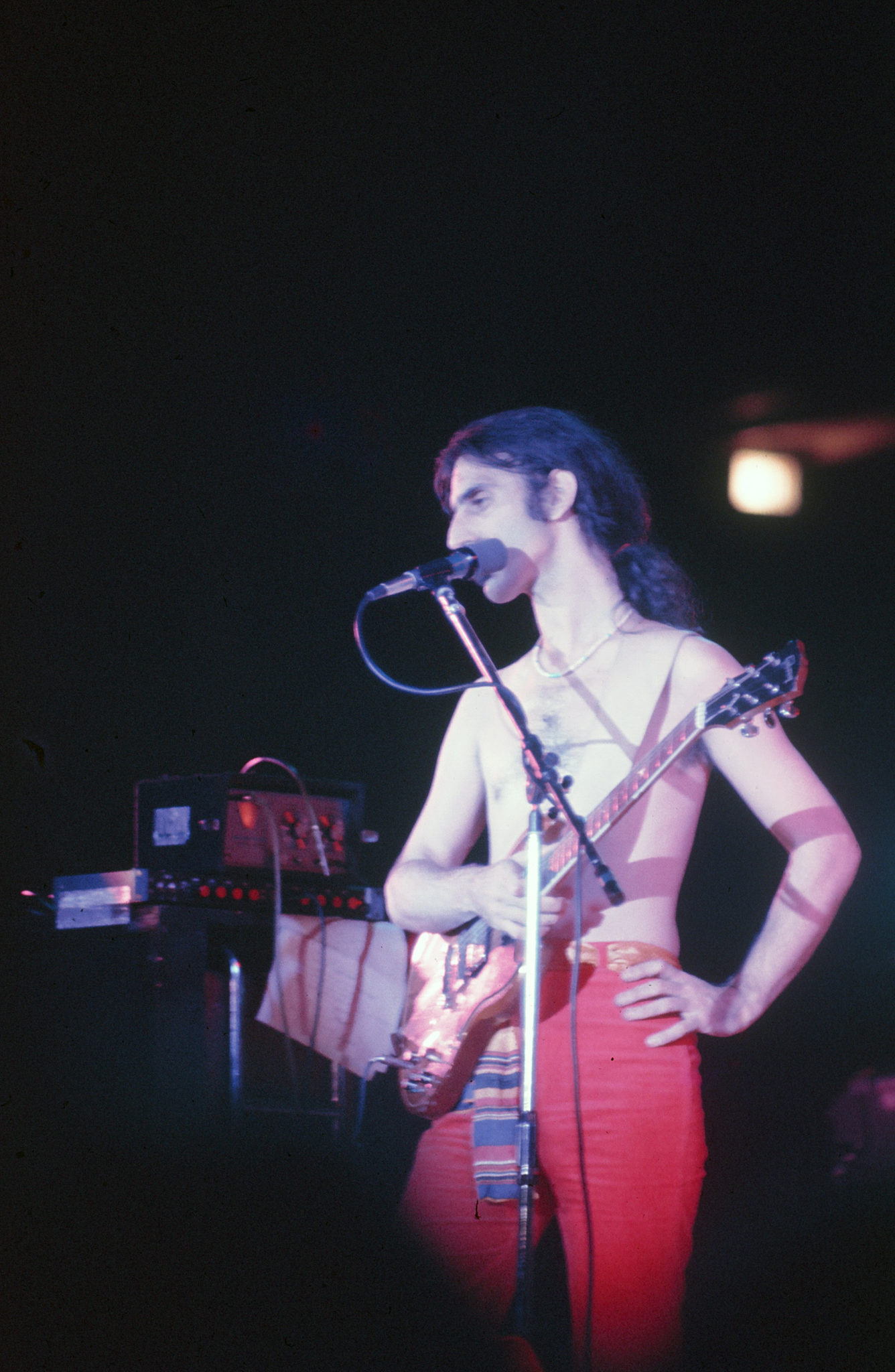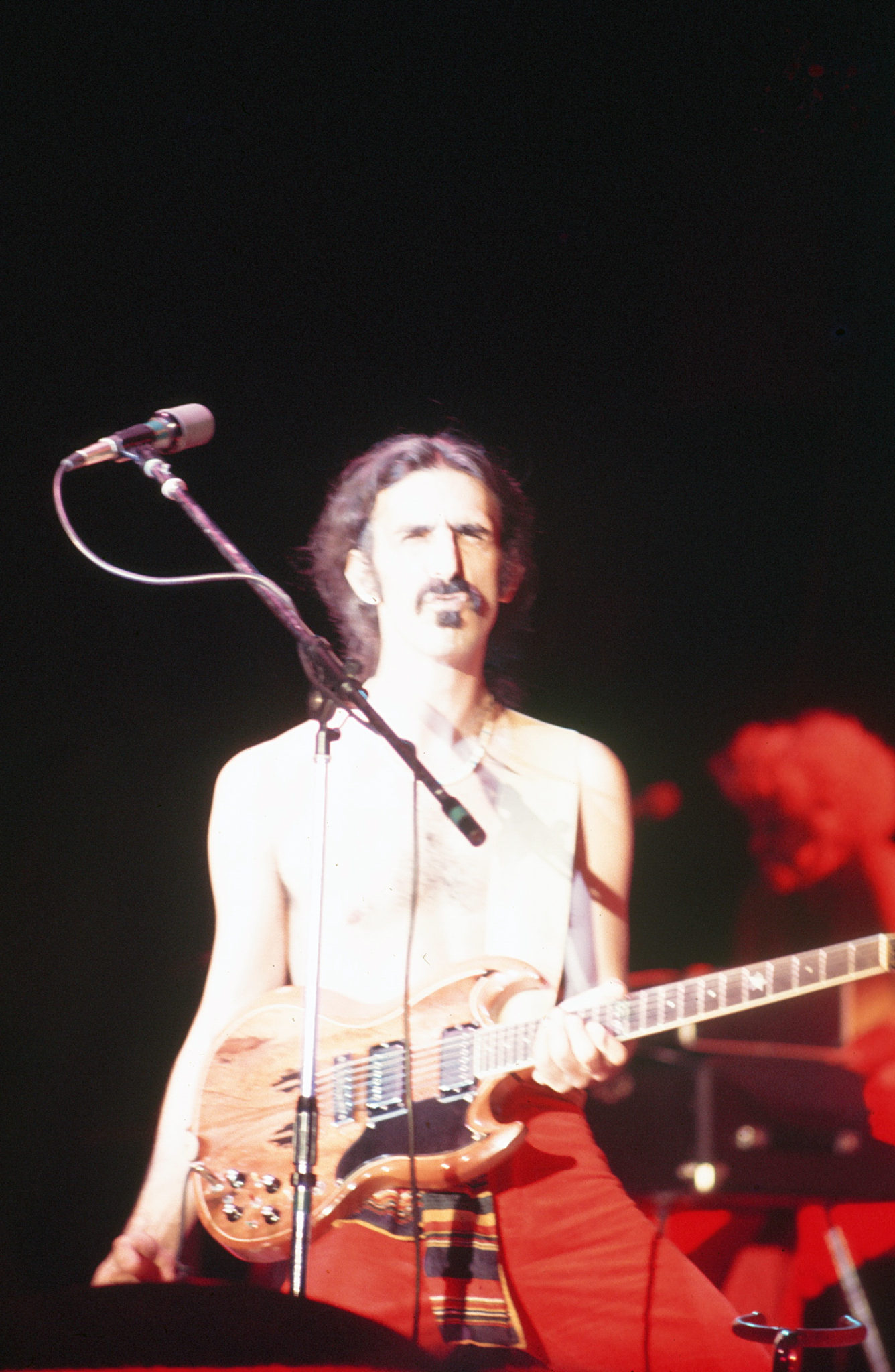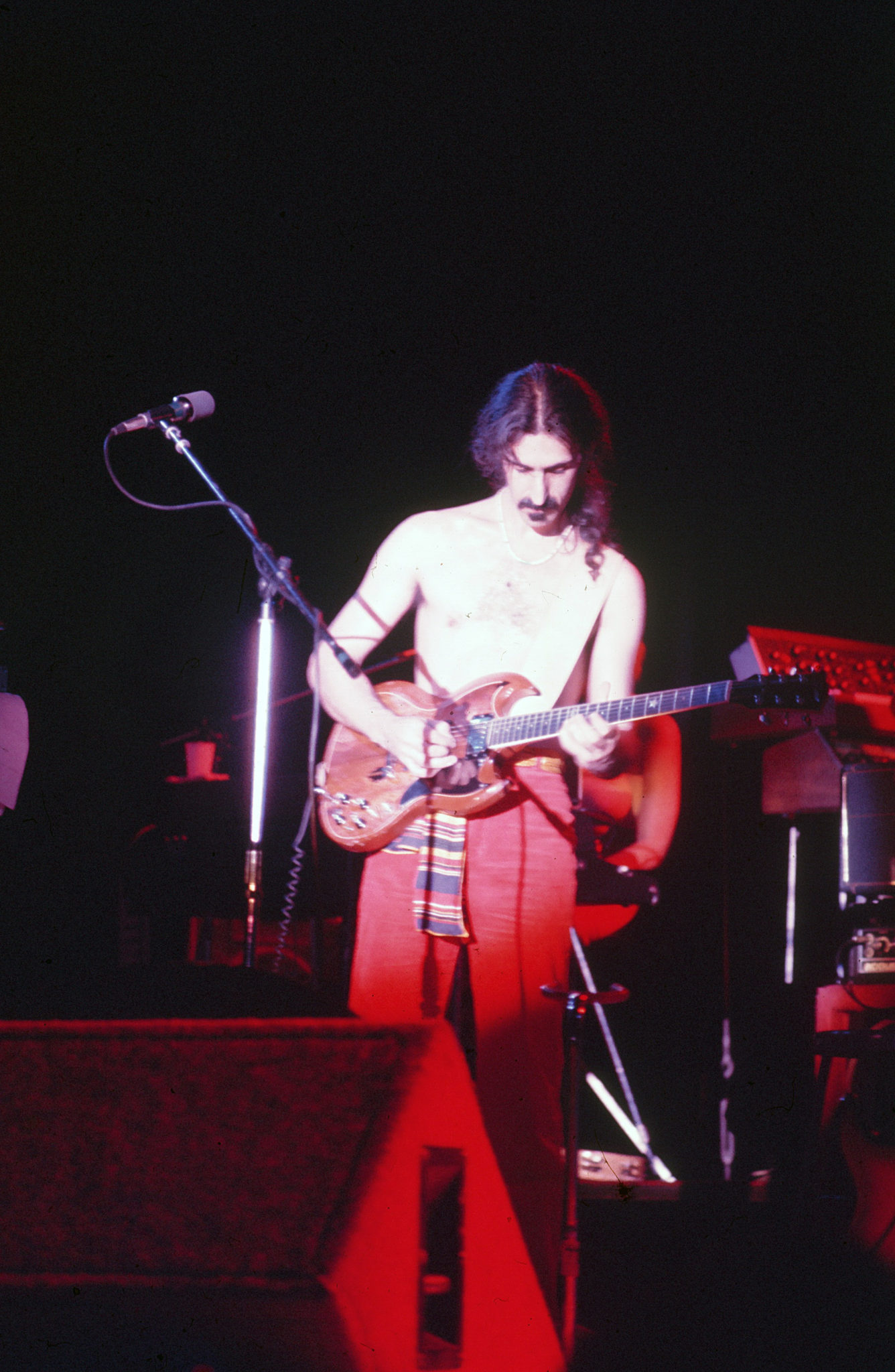 “You people don’t feel any discomfort at all, do you?” Zappa asked. With that, the band played a crazy avant garde classical piece called “Discomfort,” which fit its title to a T. The vocal style especially drew from the work of Zappa idol Edgard Varese. Then they quickly ran through a bluesy “My Guitar Wants To Kill Your Mama” and an abbreviated “Apostrophe.”