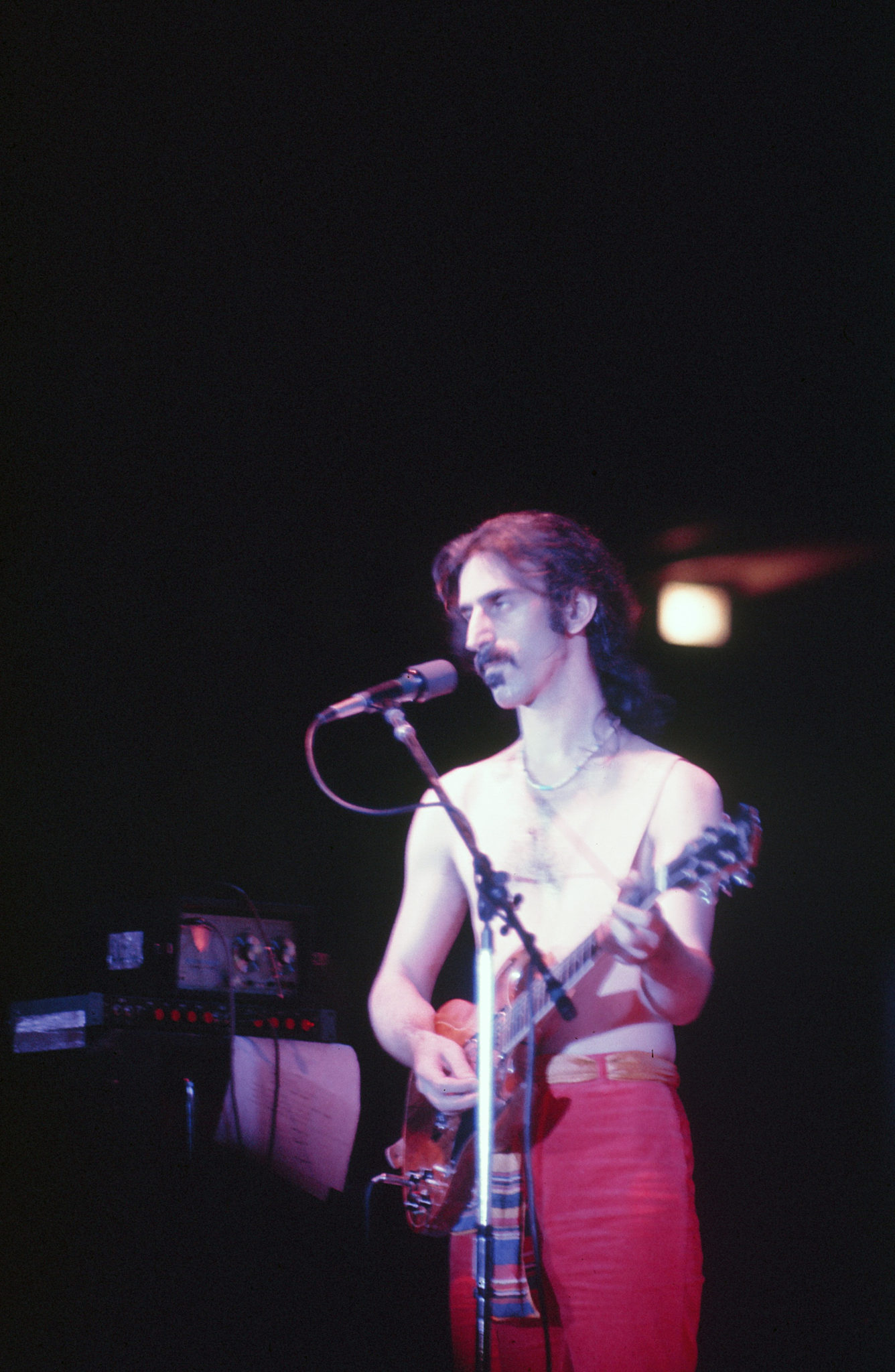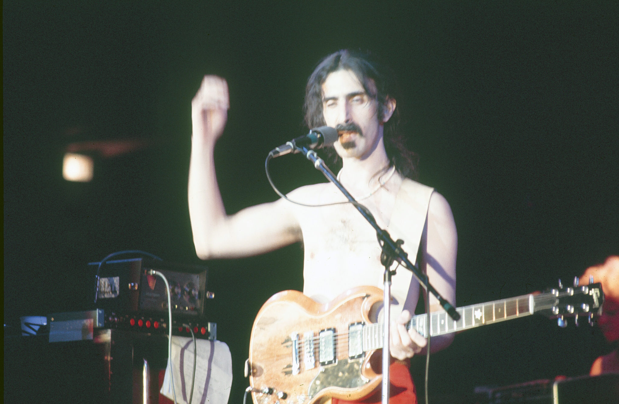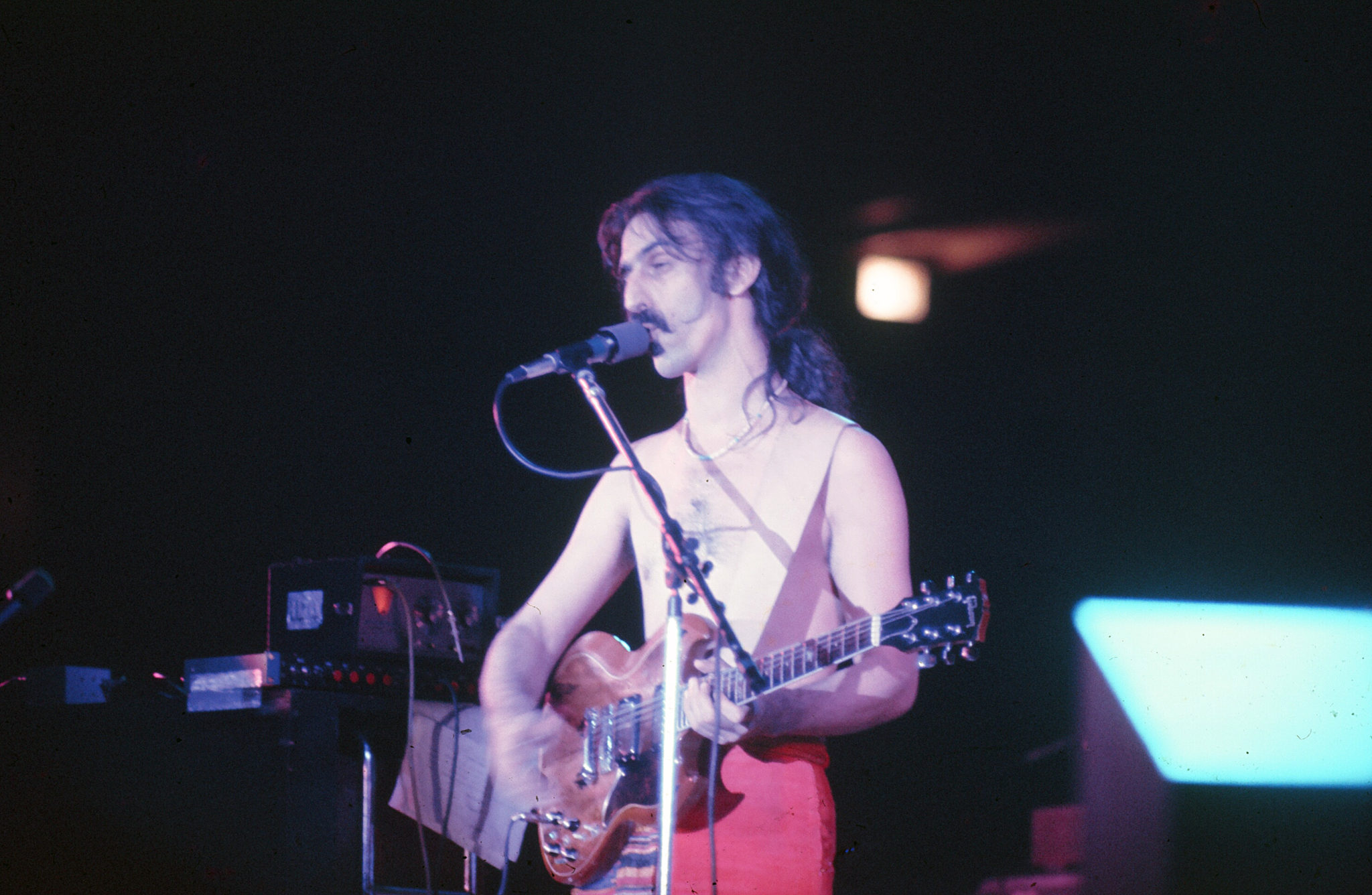 “You people don’t feel any discomfort at all, do you?” Zappa asked. With that, the band played a crazy avant garde classical piece called “Discomfort,” which fit its title to a T. The vocal style especially drew from the work of Zappa idol Edgard Varese. Then they quickly ran through a bluesy “My Guitar Wants To Kill Your Mama” and an abbreviated “Apostrophe.”