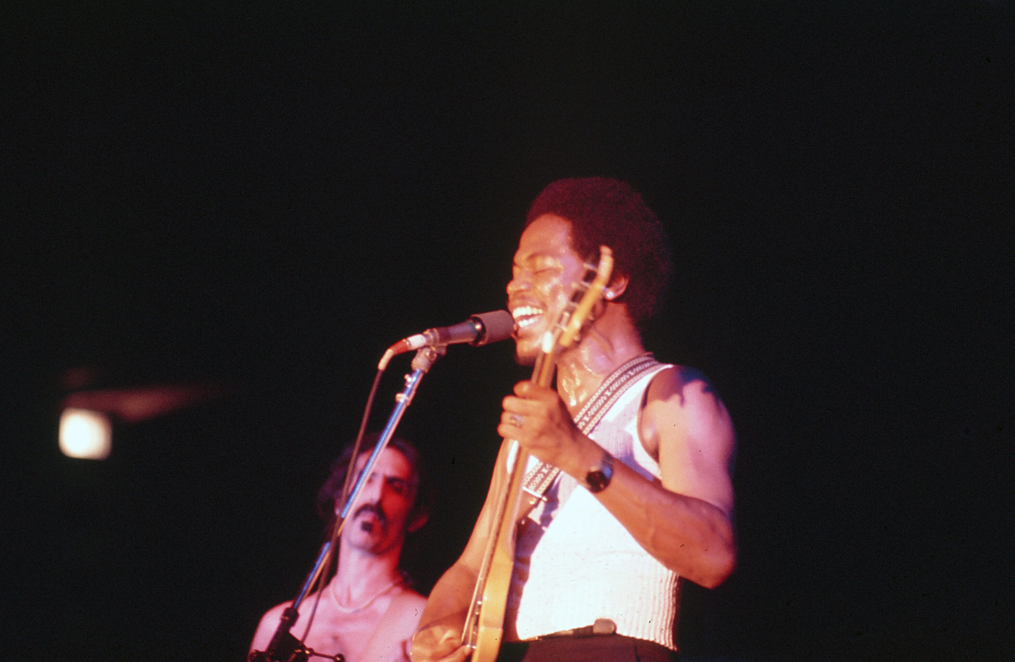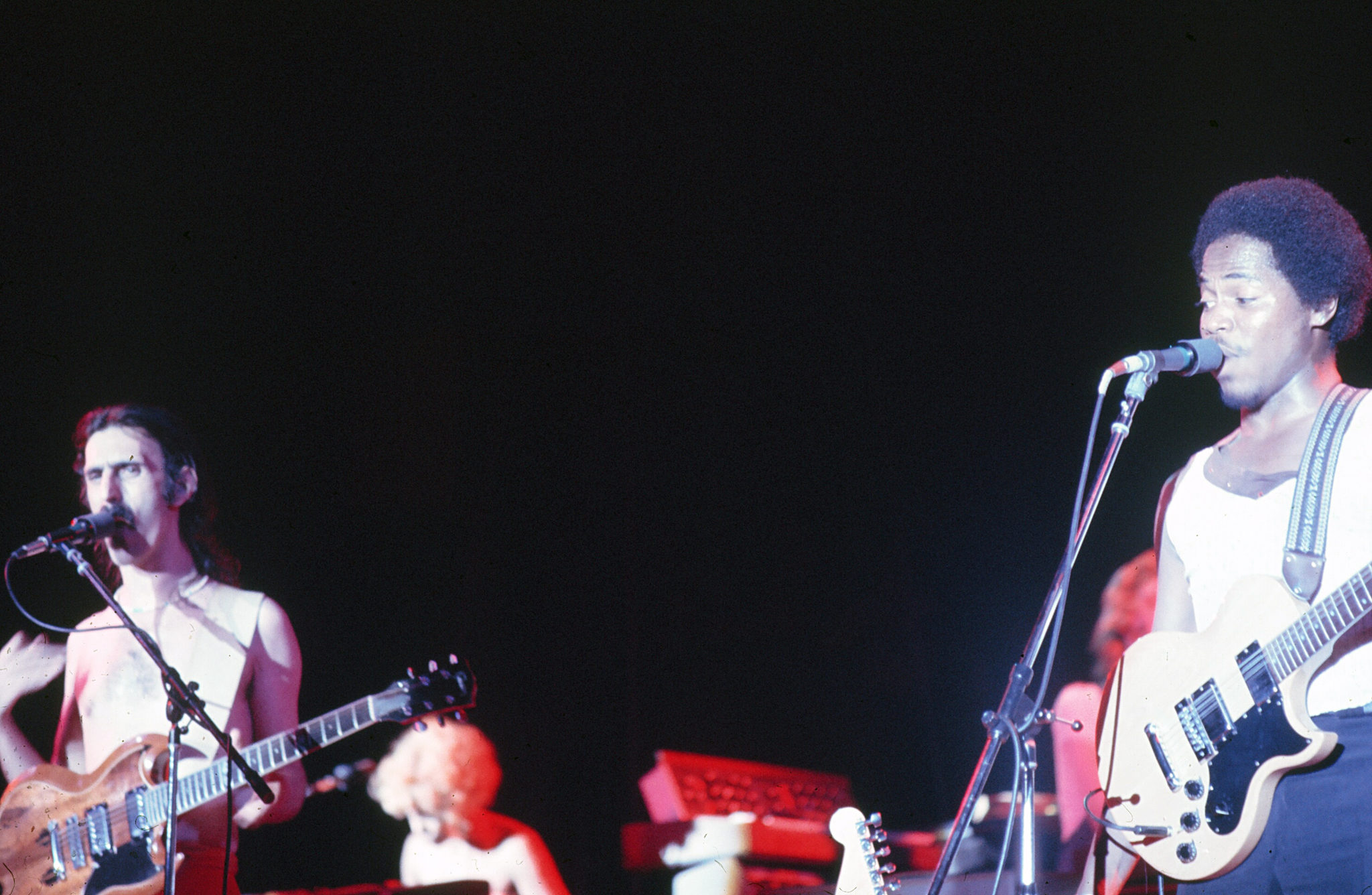 It was not until the middle of September that Frank discovered Ray White, a vocalist and guitarist, and Bianca Odin, who sings and plays keys. Both Ray and Bianca are black, and it is interesting to note that Frank has had blacks in his band ever since Ian Underwood went back to playing reeds to make room for George Duke at the keyboards. Since that time, Chester Thompson and Napoleon Murphy Brock played with the Mothers. [Ed. Note: Add Andre Lewis to that list.] The selection of Ray and Bianca was of course not a political one but rather a selection which indicates the musical directions in which Frank has always been heading (witness Zappa’s soliloquy in “Trouble Every Day” – in many senses he is a black man).