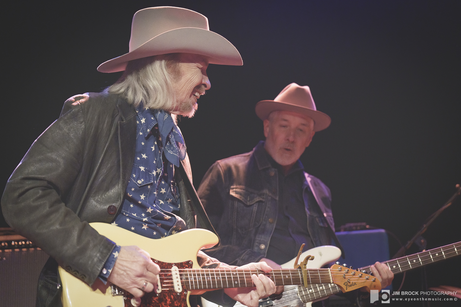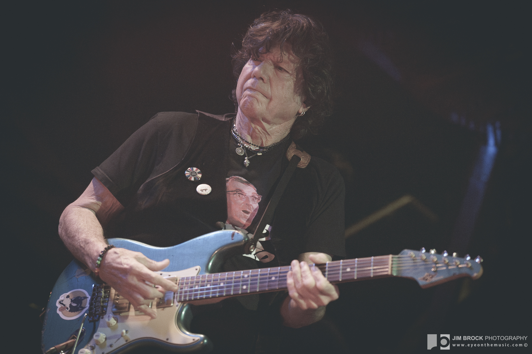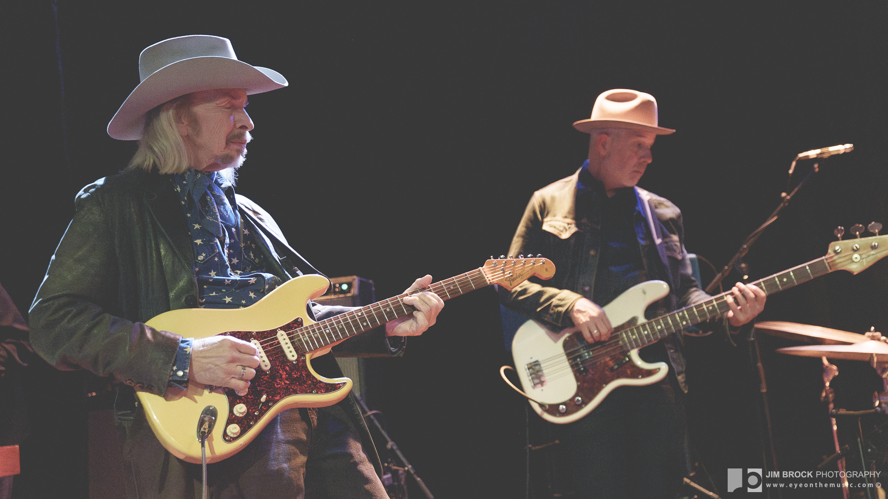 With each of the main set’s lucky seven tunes, the band stretched with a certain dynamic fury, Dave going at his Strat like a man possessed by a potent life force (which he clearly is). His conversations with Mark Karan were engaging, with intense mutual compliments from both. Michael Jerome, who’s backed Richard Thompson for 19 years, played a mixed kit of percussion and traps, building textures and drama in all the best spots. Krummenacher, he of Camper Van Beethoven, among others, who’s been at ground zero with this thing, drove and drafted throughout the night, while Swiss Army everyman Willie Aron added more layers (and deserved more flights of his own).