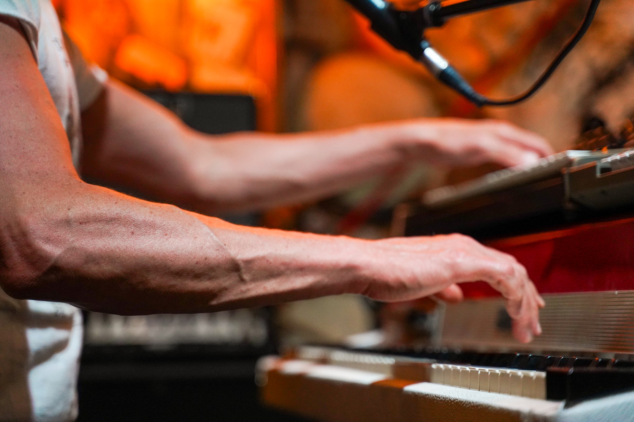 A trio of titans held forth on the first night, three spectacular musicians who mesh together in perfect… well, some might call it harmony, but we’ll settle for brilliant musical bliss: renowned keyboard wizard Brian Haas, true force of nature Nikki Glaspie on drums, and The Vibraphone Destroyer himself, Mike Dillon.